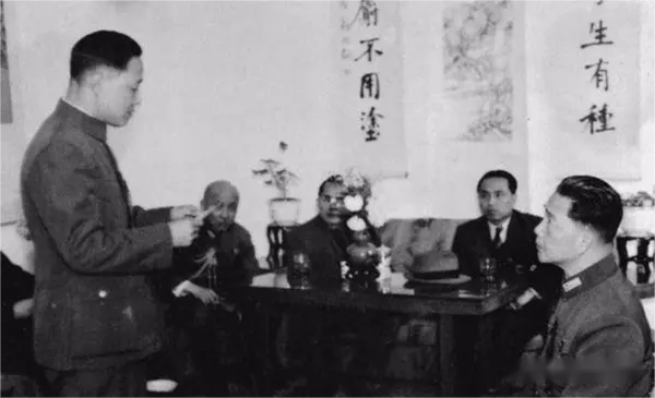 1938年,潘汉年在延安。右起:陈云、潘汉年、滕代远、李富春、项英