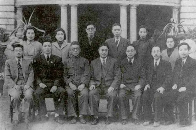 上海地下组织成员合影,潘汉年(前左五)刘人寿(后左三)黄景荷(后右一)