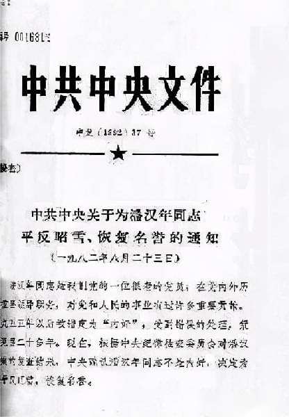 1978年之后,为潘汉年平反的呼声也越来越多。有的材料说,第一个提出来的人是廖承志,但是从最终提交的法律材料上看,是陈云牵头的。